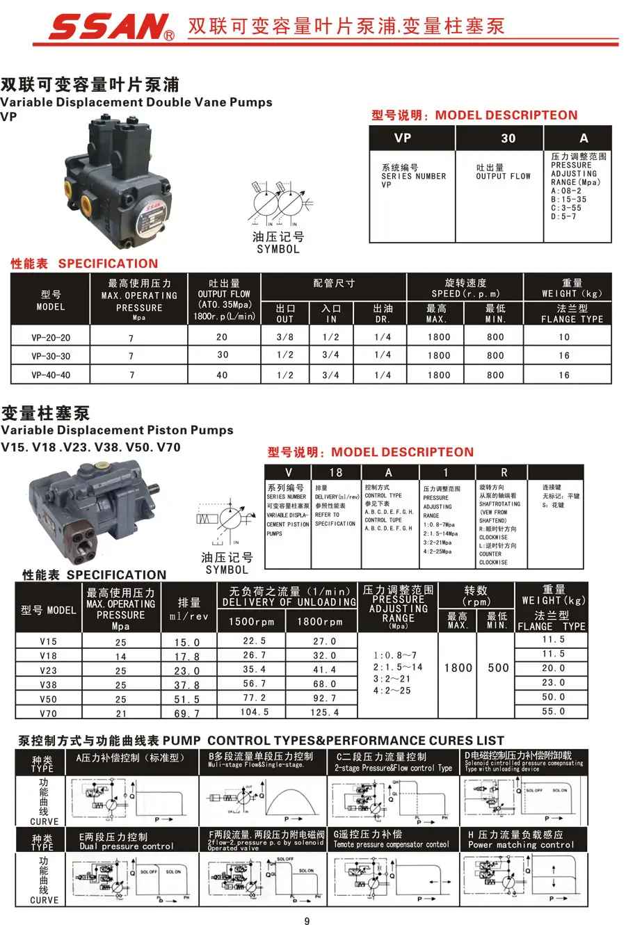 SSAN注塑液壓系統鑄鐵三相電動VARIABLE VANE PUMP油泵