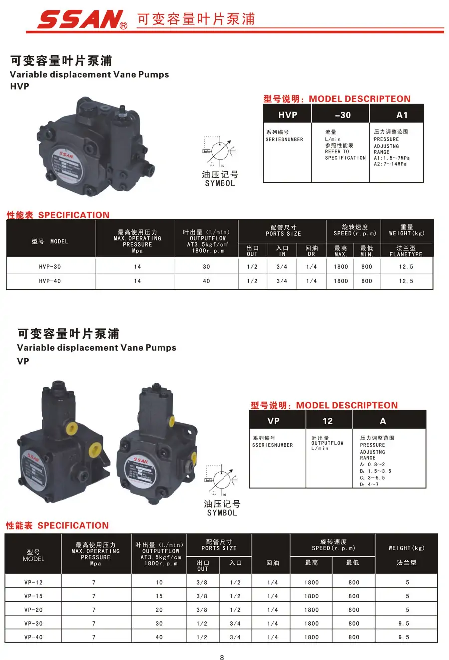SSAN液壓泵 高壓/低壓葉片泵 柱塞泵 導閥電磁溢流閥