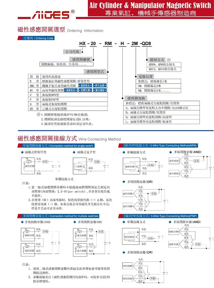 AIGES磁性開關HX-20系列有:HX-20R,HX-20RD,HX-20N,HX-20P;