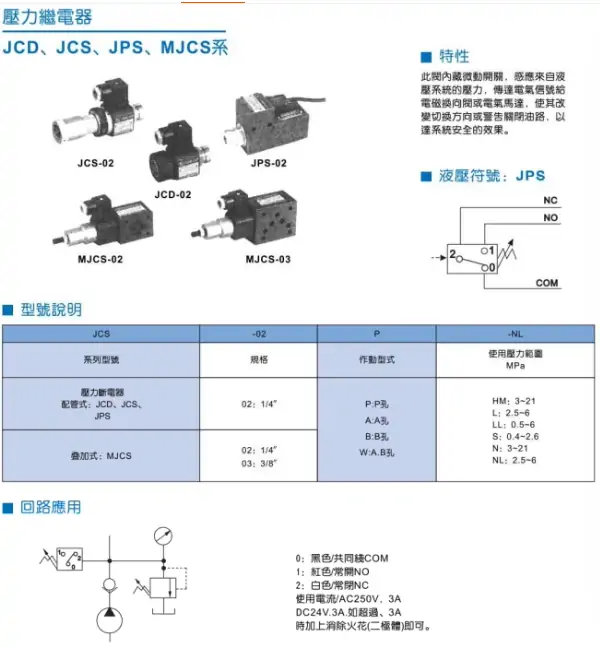 JUNCHUNG駿全興 壓力繼電器 油壓開關JCS-02H/02N/02NL/ JCS-02N