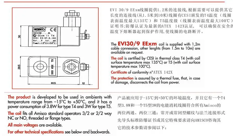 意大利AMISCO防爆線圈3009MD024W3 3009MA220W2