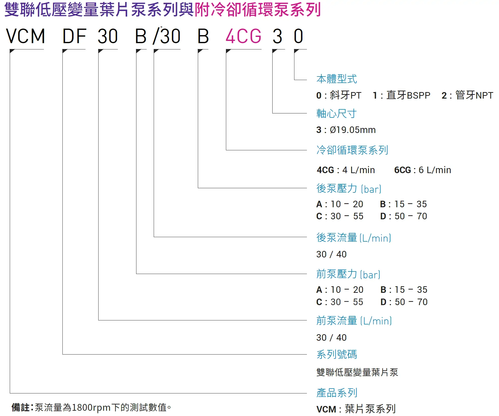 VP-SF 是臺灣 / 日系標準的 低壓變量葉片泵(常見品牌:油研 YUKEN、峰昌 WINMOST、全懋 CML 等),主打 7MPa(70bar)級、自動壓力補償、低噪節能、結構緊湊,是機床、注塑機、鞋機、液壓站最常用的低壓變量泵。