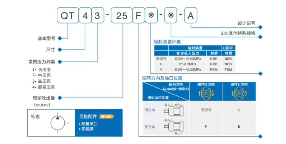 - 一般是:進出油口方向、軸鍵規格、法蘭尺寸等按客戶定制。