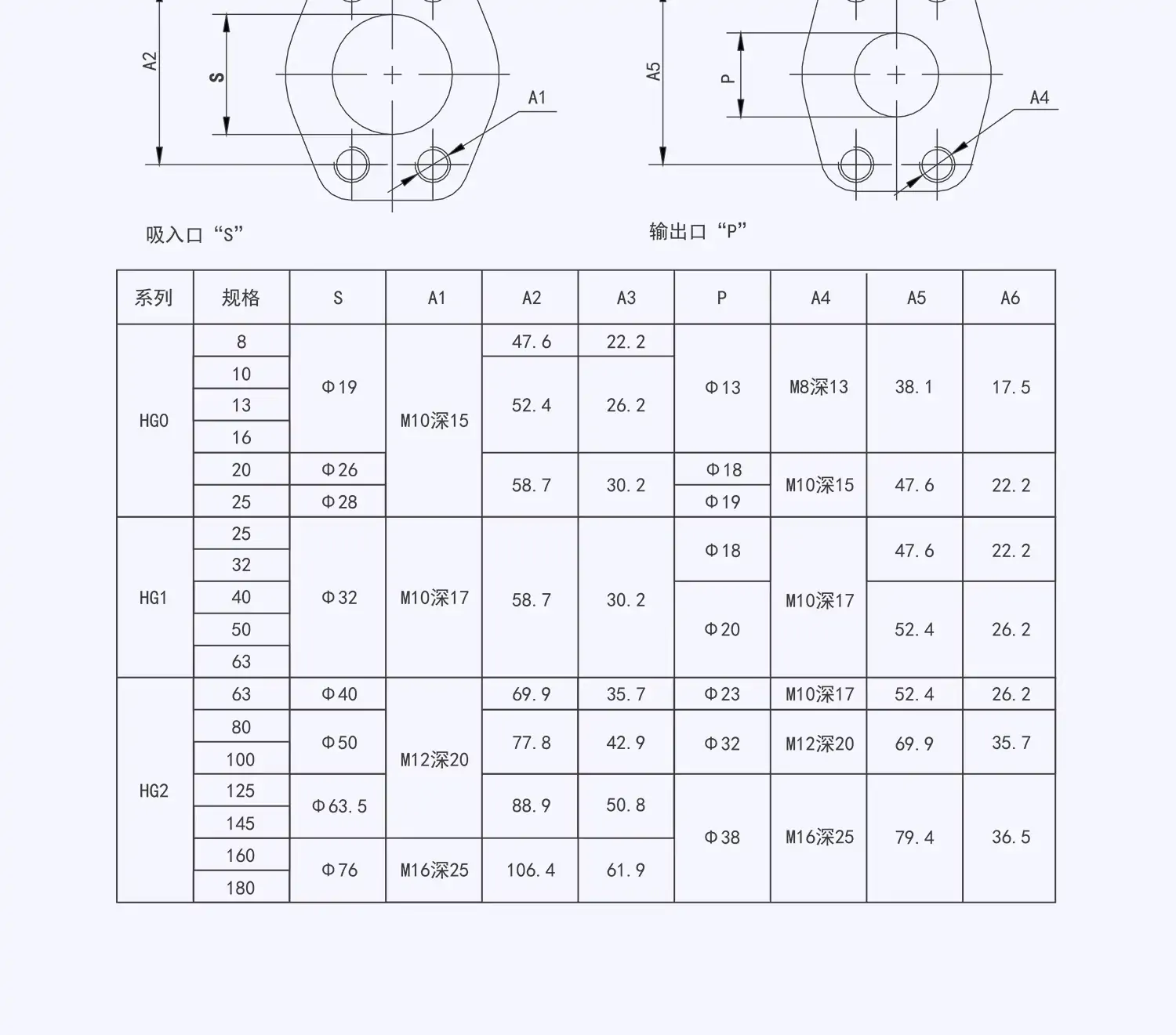 - AA:油口位置 —— 吸油口、壓油口均在上方(標準)